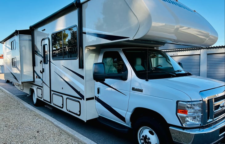 This is our 2022 Conquest, a Class C gas motorhome. Fully loaded and well-stocked. Just pack your bags, food, drinks and have fun!