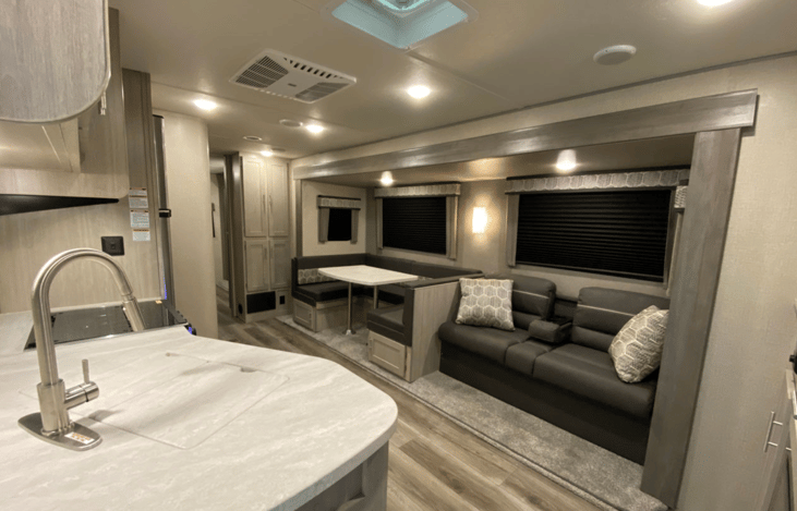 Our trip with Kevin’s RV was amazing and easy and communication was top notch! Drop off and pick up were so smooth and we had everything we needed for our 5 day trip. The bunk room is amazing for our 2 year old as well we had plenty of room for the pack n play and slumber pod all his toys and using the little couch for reading time at night was perfect. Will most definitely rent again :)
