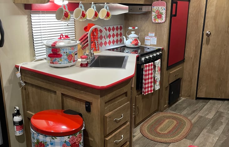 Step back to a simpler time in this vintage inspired RV, fully furnished with all of the comforts of home! Accommodations include bedding, towels and kitchenware for 6.
