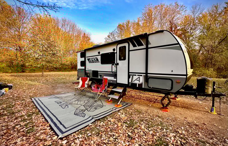 Kelley--thank you for such a great detailed review! I'm thrilled you and your family of 5 had a great camping trip with White Lightning! All our campers include well-stocked kitchens, huge outdoor rugs, camping chairs, and more! Your rental, thepex Nano 208BHE, carries 50 gallons of freshwater! Many campers only carry 26 gallons. Boondocking with 5 requires some planning for sure!