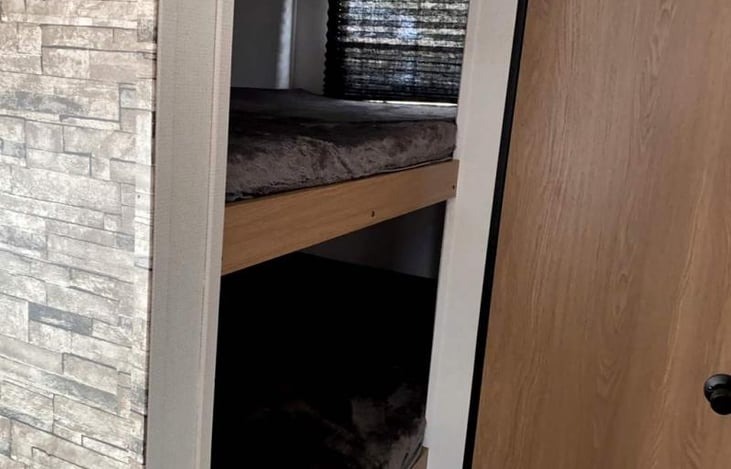 Beautiful brand new trailer with a front bedroom, queen bed; bunks that hold up to 250lbs in the rear. Indoor/outdoor shower, full size fridge, and an outdoor kitchen waiting for you to have fun. Can include gas generator if camping off grid.