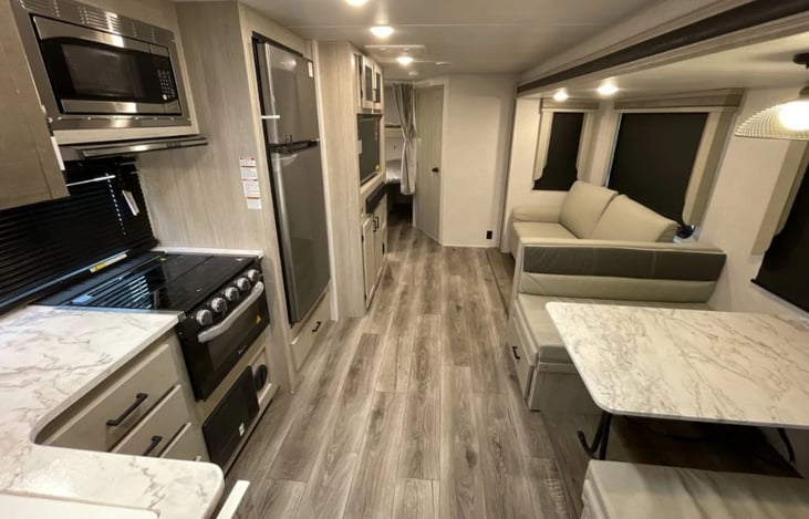Rv is available for DELIVERY ONLY. Literally brand new sleeps 8 people. Beautiful camper. Fully stocked with pillows and sheets, silverware etc. Any questions don't hesitate to ask.