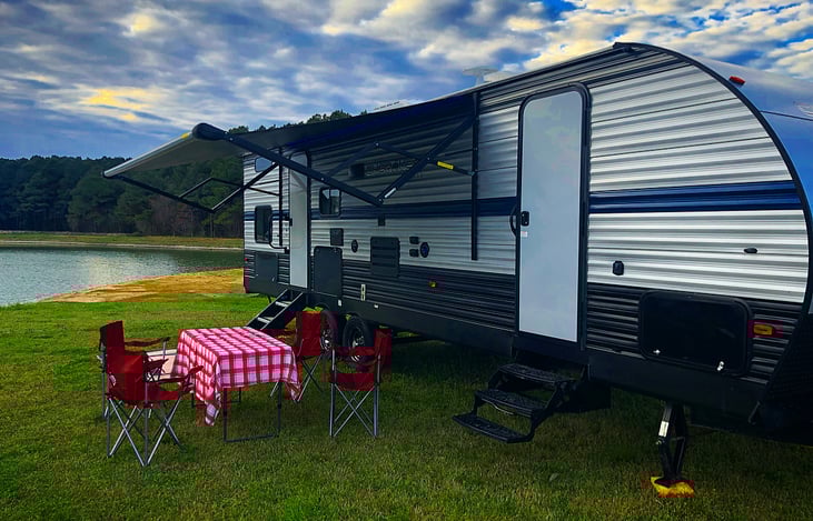 New, clean, fully-equipped travel trailer that sleeps 10! Simply book this RV and it will be delivered, set up, and ready for you to enjoy!