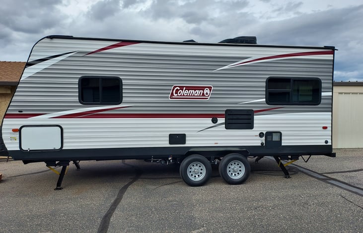This is a 2020 24' Coleman travel trailer. We offer Rental Delivery and Set-Up. This unit sleeps 4 people, which includes 1 queen size bed, dinning table and couch make out to full size beds. The kitchen has a nice size fridge/freezer and pantry, with a 3 burner stove and microwave. Includes linens, dishes and cookware. There is a one roof air conditioner and thermostat for heat.
