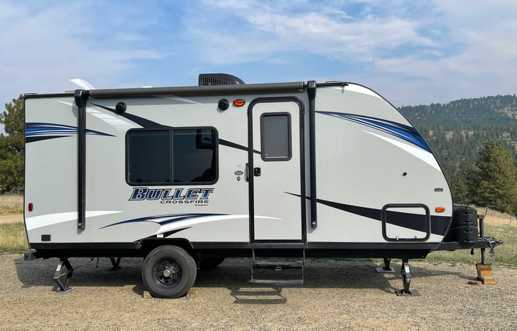 Located 15 miles south of Helena, MT. Cozy 18ft camper. Lots of storage. Murphy bed is a queen size and turns into couch. Dining table converts into twin bed. Large refrigerator and spacious bathroom. Power awning and Bluetooth indoor/outdoor speakers.