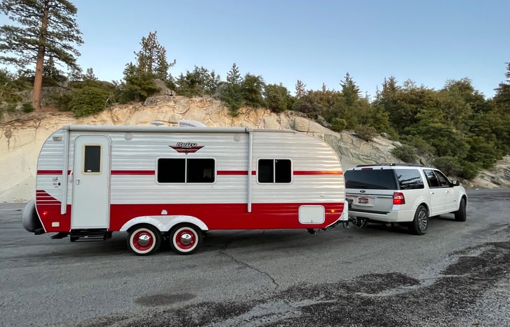 2020 Riverside Retro fabulous 189R (her name is “Red Lucy”) She has A/C, heat, flat screen tv, Bluetooth stereo, electric awning, microwave, 3 burner stove, oven, toaster oven, air fryer, large fridge/freezer bathroom with shower and small tub. Dinette removed and replaced with mid century sofa which converts to bed. Must have (by California law) a trailer brake in your vehicle to tow.