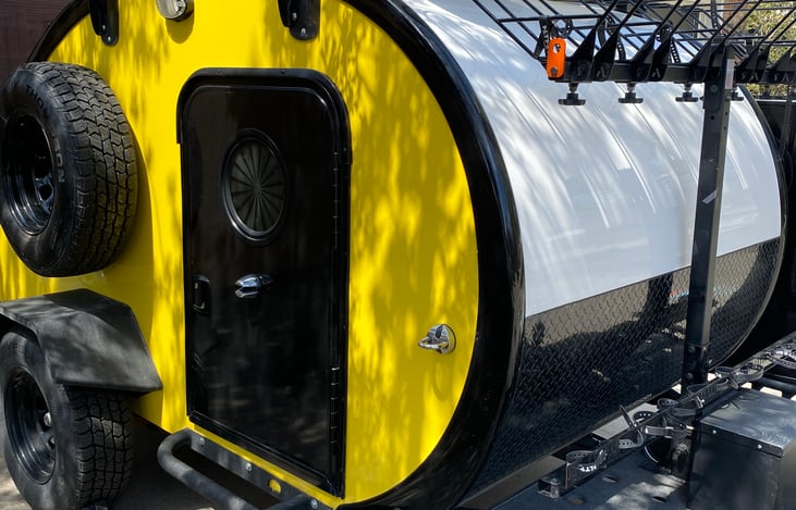 The Mean Bean is a one of a kind camping experience! Bean trailers are the only one piece fiberglass teardrop on the market currently. The single piece shell provides complete safety from the elements. This travel trailer can be easily pulled by most vehicles and offers you the comfort of sleeping in a warm bed while still enjoying the great outdoors.