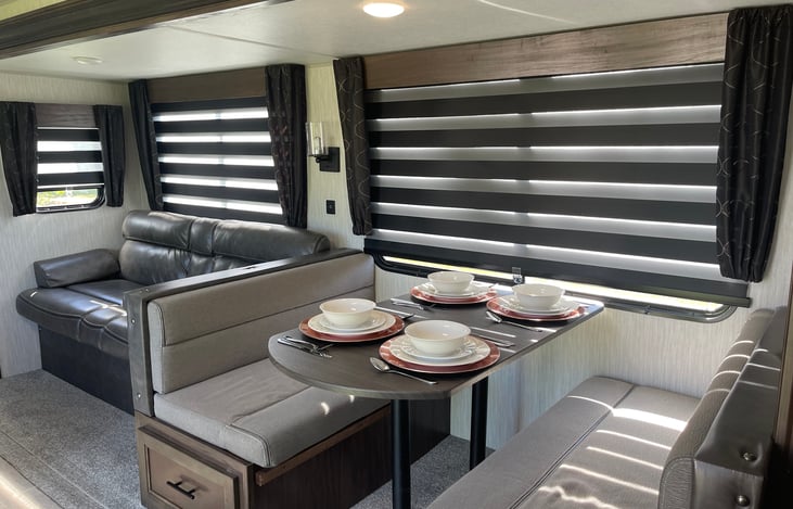 This RV was a great choice, not just for the physical space but also because Christine is very communicative and easy to work with. We opted for the RV to be parked and set up, and that made things so much easier. We had two adults and two small pups, and it was a perfect amount of space. Amenities were great - towels, linens, and soap were included.
