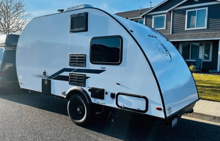Stella is a lightweight clean modern travel trailer and can comfortably sleep 4 people. Perfect for couples or small families. Stella will keep you comfortable with AC, heater, hot and cold water, shower/toilet, fridge, stove, and microwave. Plenty of outlets to charge your phones, tablets, and power small appliances.