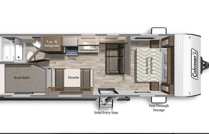 2021 Coleman bunkhouse. No slides. Comes with indoor outdoor shower, oven, queen bed, bunk beds, refrigerator, freezer. Still like new condition. Clean. Will deliver if within limits
