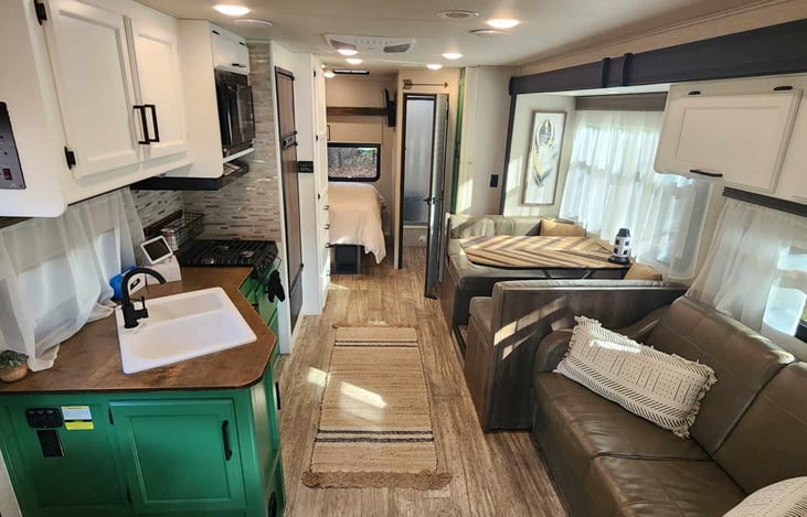 Warm, inviting, and filled with natural light, The Enchanted Fig is a thoughtfully styled Class C motor home designed to feel more like a comfortable living space than a typical RV.