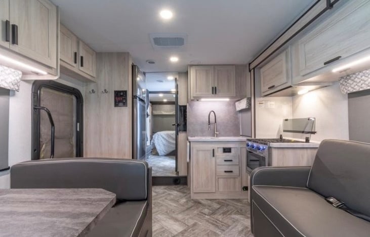 This is a 2022 Class C Bunkhouse model with 2 slides and room for 8 sleepers with two convertible couches. It has all the luxury add ons. We provide an orientation at pick up to familiarize you with all the RV systems and ensure everything is working before you disembark. Check with us for savings on rentals longer than 7 nights.
