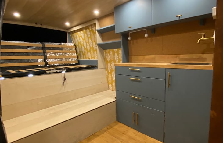 We took the Pineapple Express to Yosemite and it was a dream! We loved every moment of it. The cute decor added a lot of charm to the van and the shelving and hooks made it easy to keep our stuff stored and easy to access.