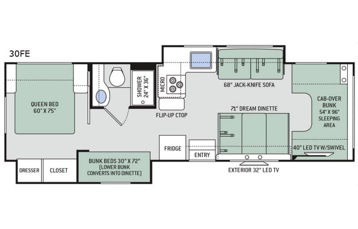 - Electrical service: 30 amp