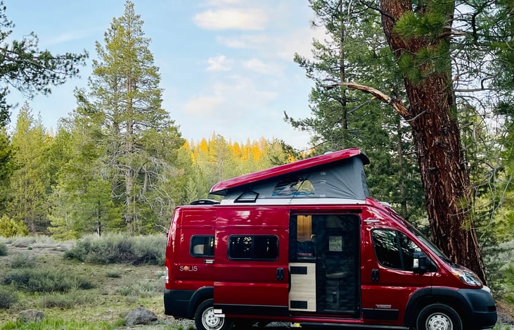 Brand new 2022 Winnebago Solis available for making amazing memories! 125 free miles per day. Gets great gas mileage - around 15 mpg! 30-minute drive from pickup location to local camping areas in the Tahoe National Forest. 40-minute drive to North Lake Tahoe!
