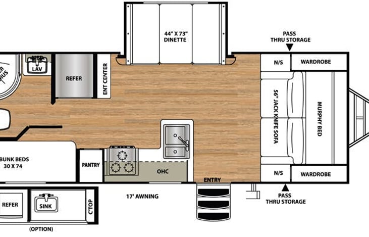 This RV is great for family camping and enjoying the outdoors! This Trailer is equipped with 1 RV Queen Murphy Bed, bunkbeds and dining table that converts to sleep 2. Additionally, there is an outdoor fridge (connected to power), sink and grill with a large awning for outdoor cooking and activities. Indoor/outdoor speakers. Rear trailer hitch for 2 bikes.