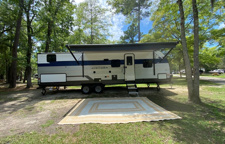 33' Travel Trailer that has been well taken care of! This spacious travel trailer sleeps up to 8 comfortable and has a 40" television with ROKU for those rainy days. Want to enjoy your time outside? My RV rental includes an outdoor rug and a large 16' awning to give you shade. Want to cook outside and listen to some music? The outdoor cooktop and speakers make that a reality.