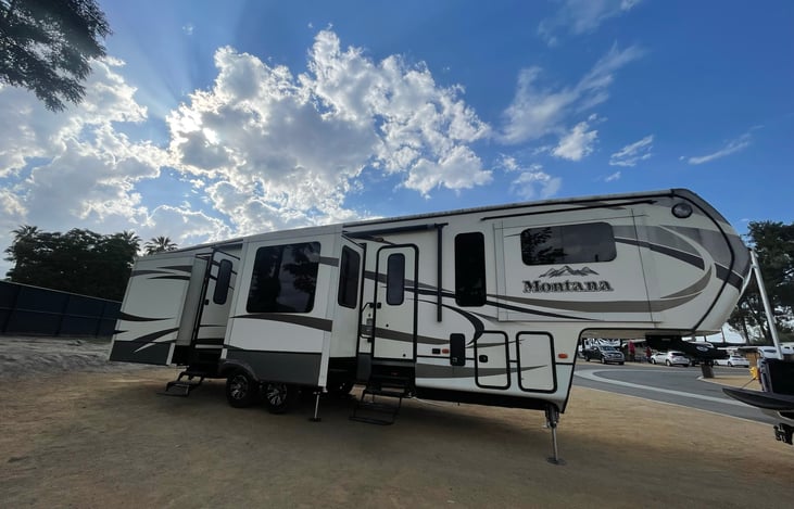 RV delivery and set up only. Not allowing anybody else to tow. Please do not book without delivery. This RV is new to our family and very clean. Sleeps 6 comfortably. Lots of room for activities with 6 slide outs. Watch TV, play music, cook, whatever your heart desires in this rig. Bed Linens, bath towels, and cookware including plastic and paper (for those who don’t like dishes) included.