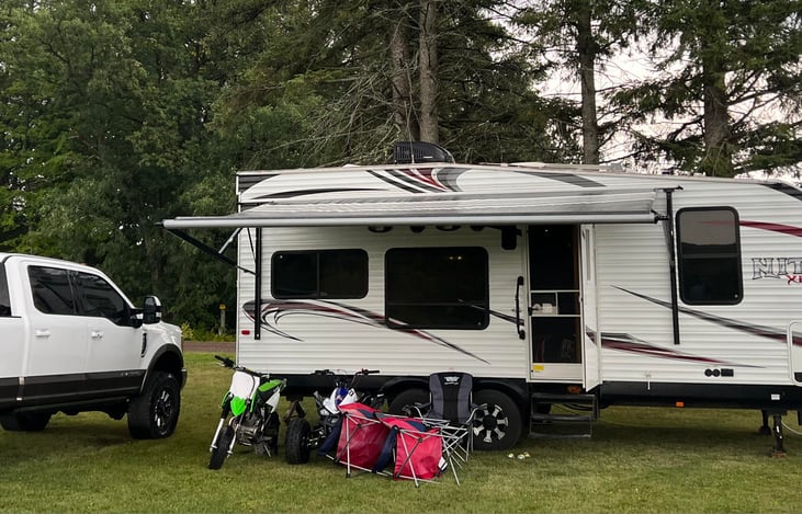 Our Nitro is perfect for a family with small ones who want to have a fun camping experience! It also a great size for a couple looking for an outdoor vacation with all the comforts of home along with having the motorcycle, bikes, quad, SxS or kayaks!