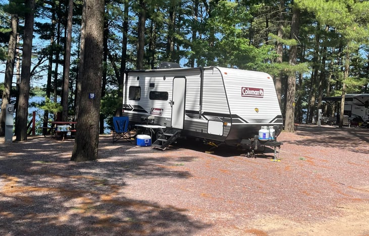 This is a 2022 Coleman camper, while small is very comfortable for a couple or a small family. It will include two adult camp chairs, a small propane grill as well as a Keurig coffee maker so you can enjoy you own flavor of coffee!! We allow up to 2 dogs, we bring our two dogs camping with us all the time. You will find USB ports on both sides of the bed for charging your phones.