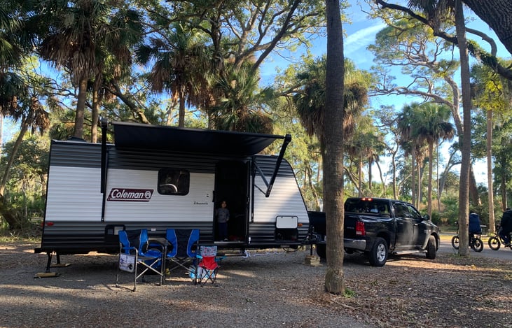 It is a small camper, but you see that in the listing. The shower is tiny, but we used the campsite’s shower facility which was nice. The camper’s shower is very helpful if you have kids.