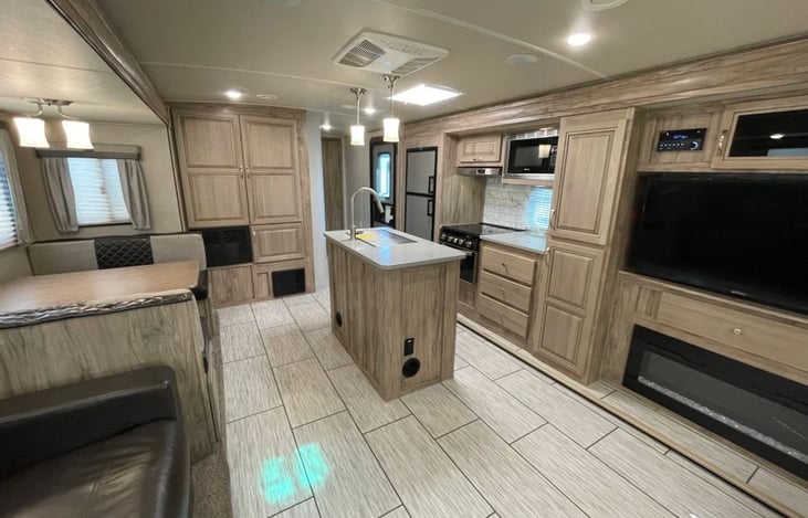Room for all to enjoy this travel trailer! Everyone will love to sit in the rear living area that includes a tri-fold sofa, and 2 recliners.