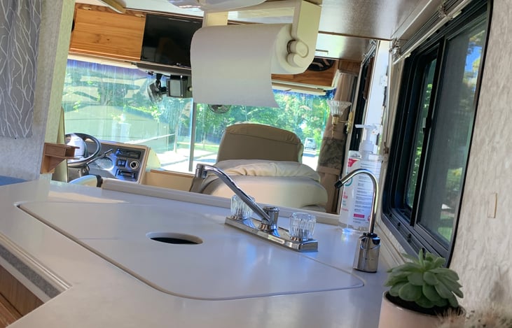 Oldie but goodie. This ‘bus on wheels’ has everything you need to have experience glamping at it’s finest. Large size class A motorhome has mint interior, very clean and comfortable. Rear has bedroom with full size bed, closet/powder area. Full size shower, double (propane) furnace, hot water tank, generator, HDMI television.