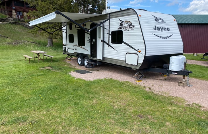 We are located in the beautiful Black Hills just a short drive from Mt. Rushmore. Have fun seeing all the beautiful sites in the city of the presidents. This camper has everything you need to make your trip great. Fully functioning kitchen, hot water, bathroom, shower, heater and air conditioner, sleeps up to eight, and in good condition. Generator available upon request.