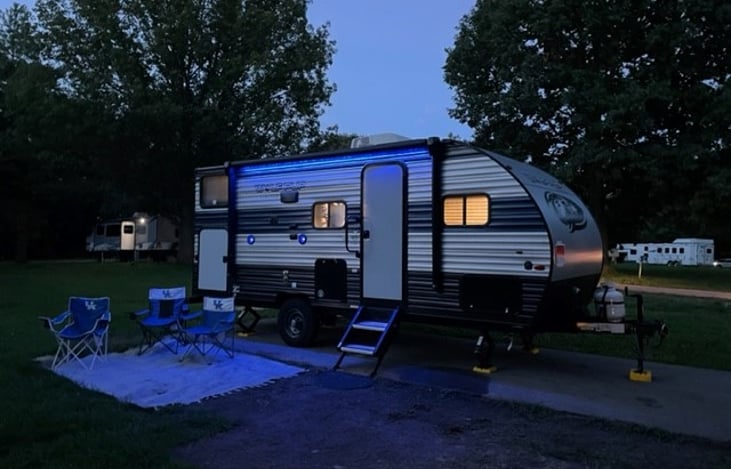 Explore S’more Adventures has added another great rental to the wolf family! This is a Wolf Pup Limited 17JG. This beautiful camper sleeps 6. There is a queen size bed, twin bunks, and the dinette converts to a double bed. There is a full bathroom. A great kitchen to cook yummy meals. A wonderful dinette for playing games with your family or friends. An outdoor shower.