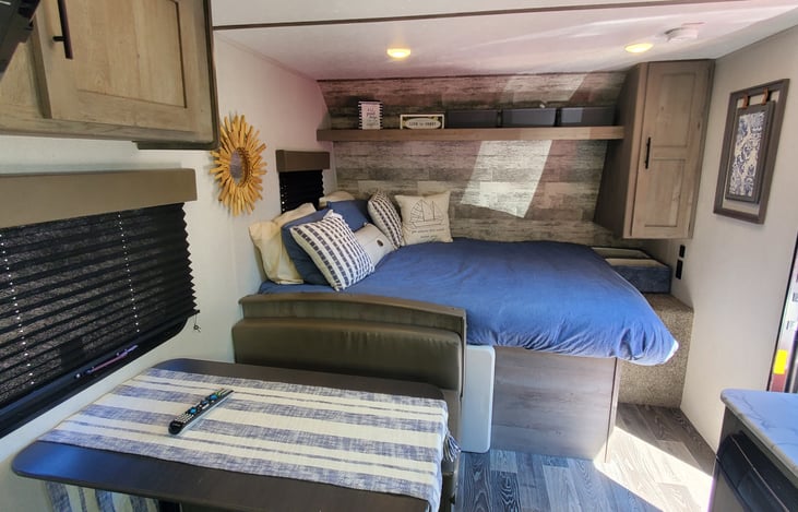 We rented the trailer for two nights from Phillip and Asia and were extremely happy with both the trailer and the rental experience. The trailer was VERY CLEAN, comfortable, and included many kitchen and camping items we didn't need to bring from home.
