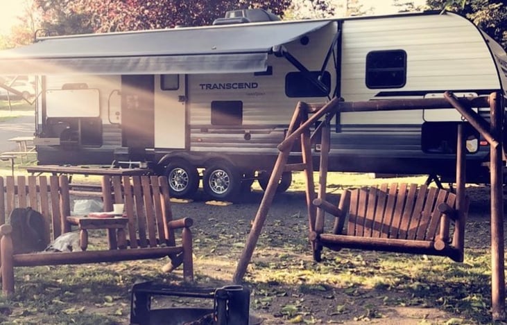 Rent a piece of our family! this is our 2019 Grand Design Transcend travel trailer we affectionately refer to as Ellen (Griswald)! She is perfect for your weekend getaway, your kids weekend sports tournament or even your week long family vacation.