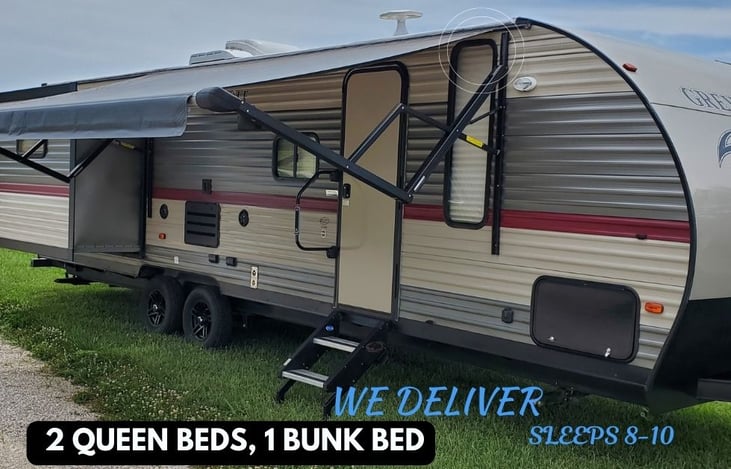 Hi, my name is Jill. I welcome you to experience camping in Luxury and Style with our newest addition to our fleet! Load up the family and start your next camping adventure of your dreams. Grey Wolf by Forest River is a 2018 Luxury 33’ Bunkhouse Travel Trailer that features double slides, private master bedroom, separate bunk room for the kids, and two entry doors from the outside.