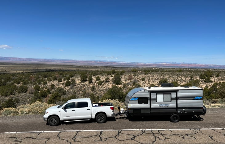 Hello! Our names are Jared and Kara and we have lived in Arizona for 3 years. We have loved having our travel trailer to explore AZ and all around it. Some of our favorite destinations are Dead Horse State Park, Cabbage Patch on Mingus Mountain, and anywhere near Sedona. We love to hike, fish, and kayak together, and we hope you can make countless memories in our RV just like we have!