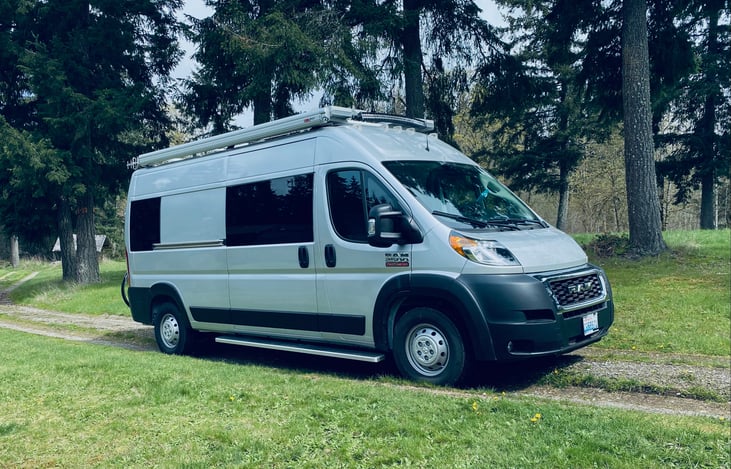 Mu is designed and custom-built from a brand new 2021 Ram Promaster High Roof WB 159. The owner built it completely from scratch, so your host knows every detail of the design and implementation, so you know you are on good hands in support.