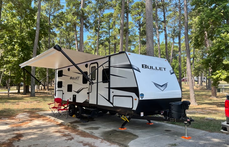 Brand new RV! One Slide for the dinette, 2 bed bunkhouse, queen sized bed for mom and dad, plenty of room for family fun, 1 A/C, central heat, 30 amp bumper pull, lots of space for family and friends, storage through out the rv, New 2022 modern interior, indoor and outdoor bluetooth sound system( I love my music), led color changing lights under the awning for nightly fun