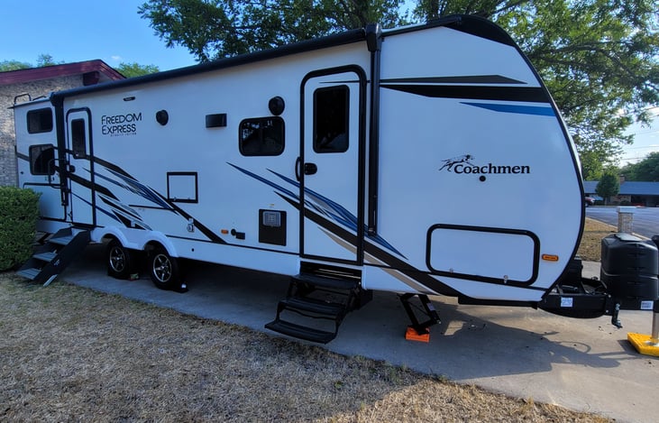 Ready for your Hill Country getaway? Bring your family or friends and enjoy all that the hill country has to offer in our 33 ft. 2022 Freedom Express Ultra Lite RV. You can feel peace of mind about safety and health because before each rental the RV is sprayed by StaticShield Sanitizing Solutions LLC. This provides an active 4-D Bio-Shield against germs.
