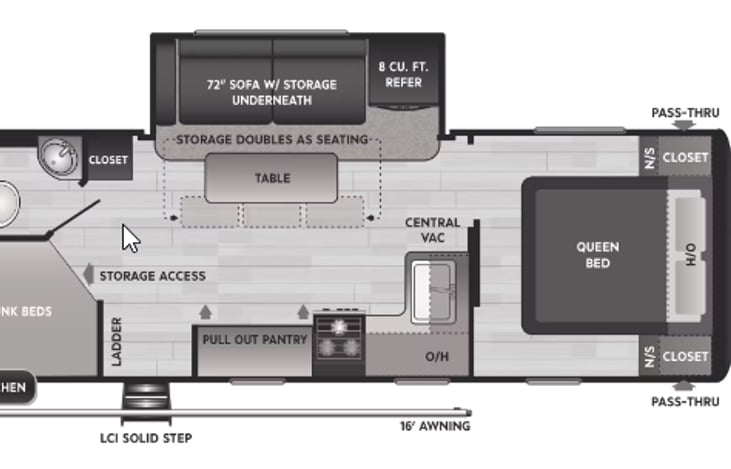 Mileage and generator hours that are included in a rental vary by listing. You can view the nightly mileage and generator hours that are included when renting this RV, as well as fees for excess mileage and generator usage, in the Rates and Availability section.