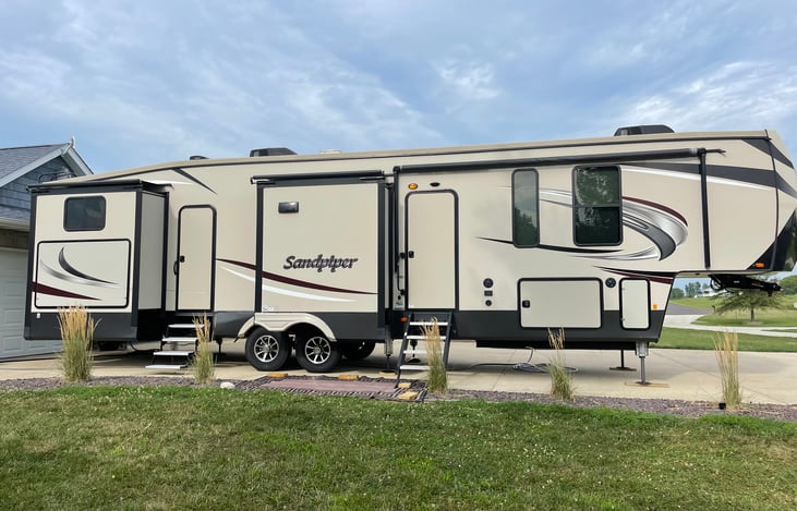 Take the family on the trip of a lifetime in our Sandpiper Fifth Wheel! From the private bunkhouse suite with half bath in the back to the private master bedroom in the front with full bath, you will have plenty of space to bring along family and friends as you explore the great outdoors. Two entry doors give you convenient access into this unit.