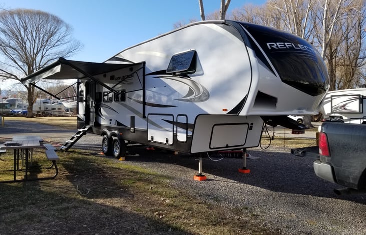 Grand Design - Reflection is known for its ‘s luxury and modern design. It more of a luxury townhome on wheels than an RV. Large bedroom with queen bed, full sized bathroom with large shower. Large kitchen with microwave, range and over. Large under pass through storage. Air-conditioning and heating. Heated and message recliner couch. Large flat screen TV. Two large slide outs.