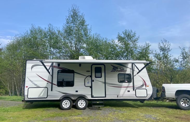 Hi, we're Dallas and Kaz. We're a weekend warrior couple that loves to explore the PNW with our two black labs. We've taken our trailer from the Pacific coast to Wyoming and used it for hiking, hunting, and tailgating. We've got lots of ideas for trips and places to go. Message us for ideas!