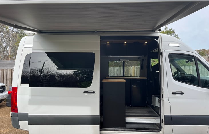This was a beautiful van and we loved the awning, it protected us well from the rain during our trip. The bed was comfortable, I loved the lighting within the van and dimming abilities. We stocked the van fridge on our first stop to the grocery store, so our cooler stayed empty the entire trip we didn't need it.