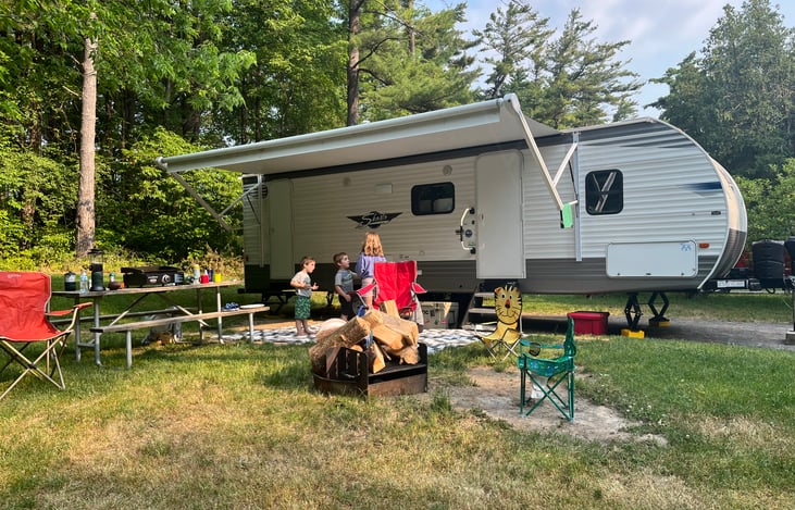 My wife and I have twin boys that just turned 3 and a 7 year old daughter. We love to take the camper on mini adventures with our family.