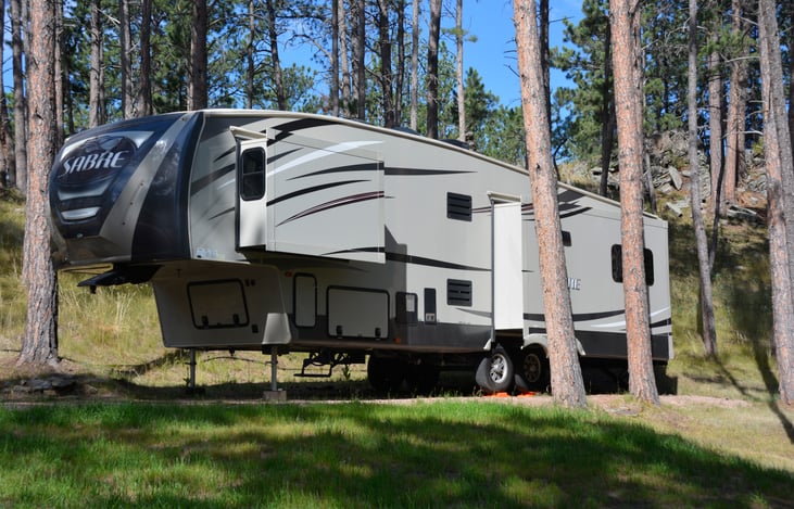 We rented this 2015 Forest River Palomino Sabre during 2023 Sturgis from Kim and Rod. I can't say enough good things about our experience. They delivered and set up everything (even in the muddy site we were in).