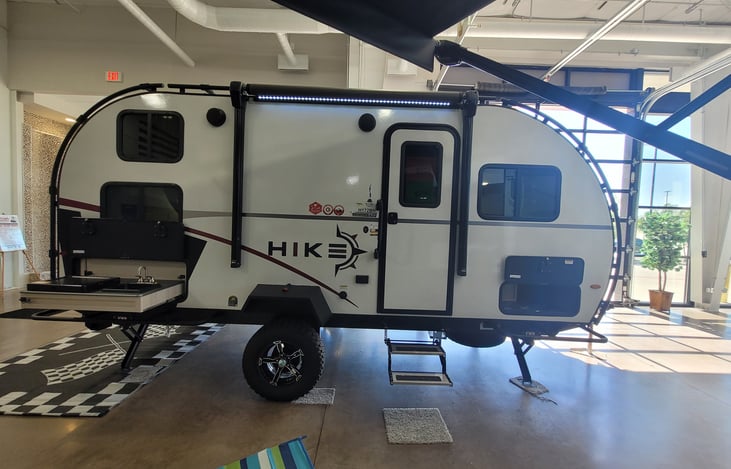 We have a Winnebago hike that features sleeping for 4. The sleeping areas is 1 queen bed that is also a U shaped dinette and full size stacked bunks. Comes with a full bathroom, and microwave that doubles as an oven. Kitchen is fully stocked with inside and out side grilling needs. The outside has a rugged exoskeleton to safely secure things you might want to bring along.