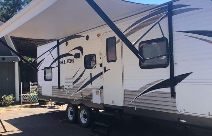**DELIVERY ONLY** Fully Stocked--Incudes--linens, dishes and cookware. 6 Person RV Rental with One queen bed, Two Bunk Beds and table makes a bed