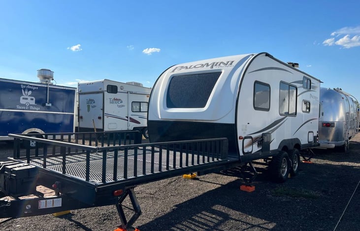 Best toy hauler to get lost in the woods. Off-road package and solar panels so you can take it anywhere. Unique design so you can take take the toys and keep them out of the camper. Platform is 7 ft wide x 10 ft long and holds 2 ATVs.