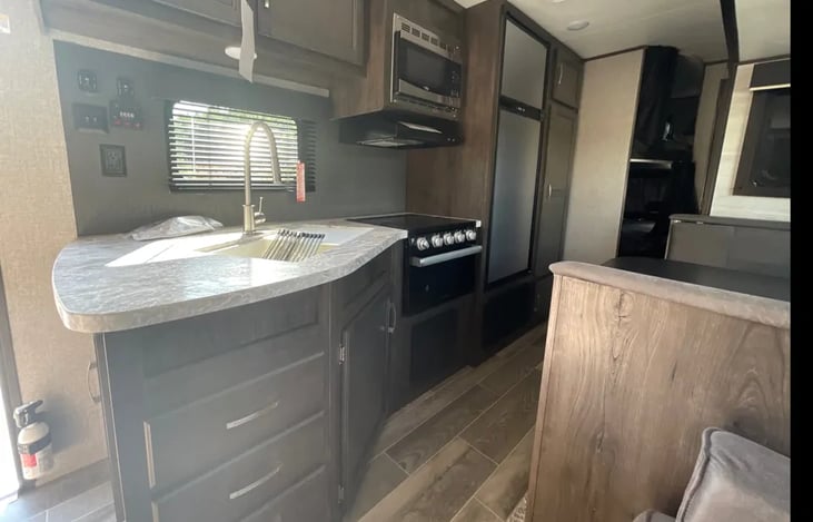 We want to share our love for travel! You will love spending time with your family in this comfortable travel trailer. You can watch movies under the stars, and cook breakfast alongside nature. Let us help you love traveling.