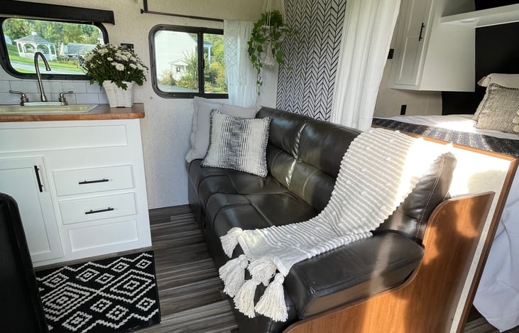 "ALANI" Is our beautiful camper, very Pinterest! It is white inside and very bright. It is PET friendly :-)