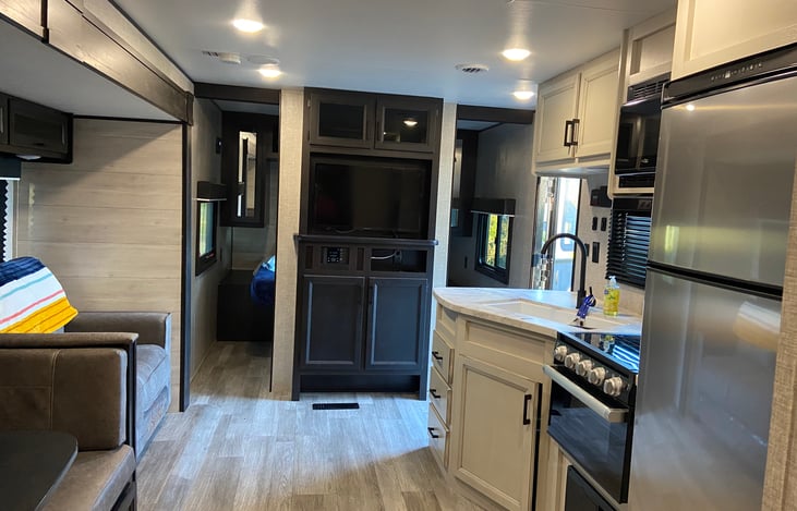 This is a very family friendly camper. Perfect for your next trip. Book today with Peachy RV Rentals!
