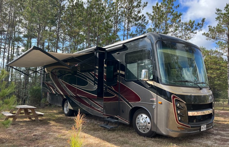 Pet friendly new 2022 fully equipped Class A with newly installed Sway bar for safer driving. Plenty of space with electric fireplace with auto stabilizer. Extra beds have never been used. It great condition. 2 TV inside and 1 TV outside. Electric awning. Has lots of space and comfortable